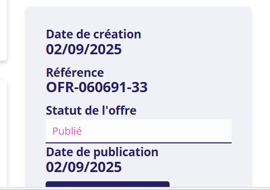 ci-joint les captures écrans de l'offre saisie sur jobopré et le back office sur les offres sur jobopré .