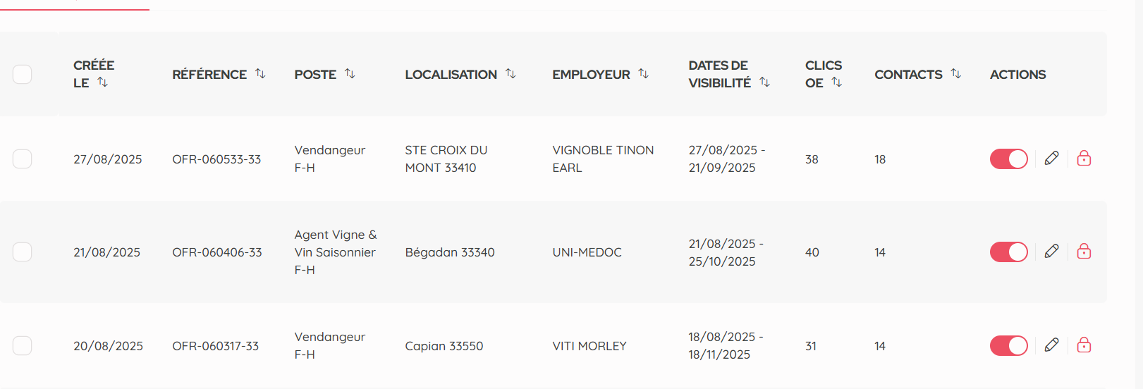 Lorsque qu'une offre est créée sur L'agriculture Recrute, il y a un délais d'un jour avant que l'offre soit disponible sur Jobopré.